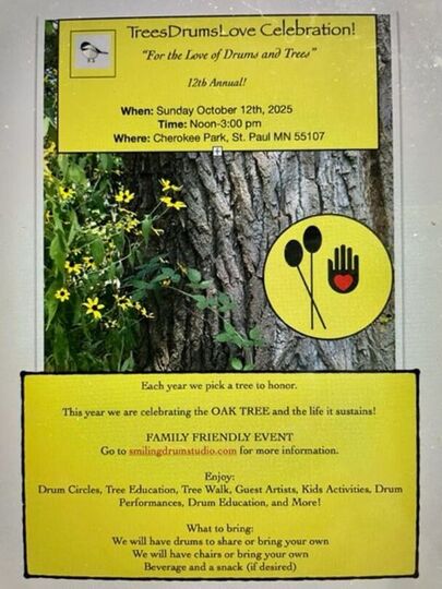 TreesDrumLove Celebration 2025 “TreesDrumsLove” Celebration - 2025 - 12th annual - “For the Love of drums and trees.” Cherokee Park, St. Paul